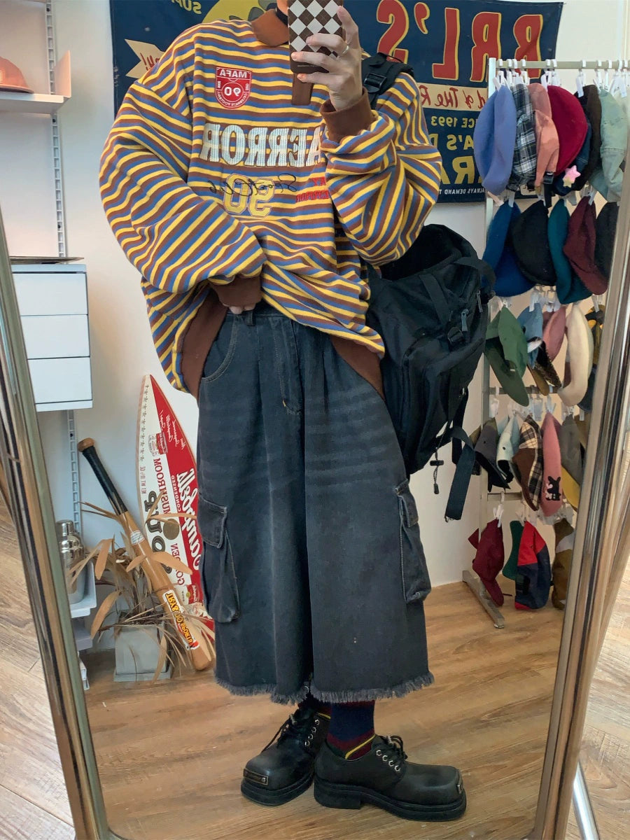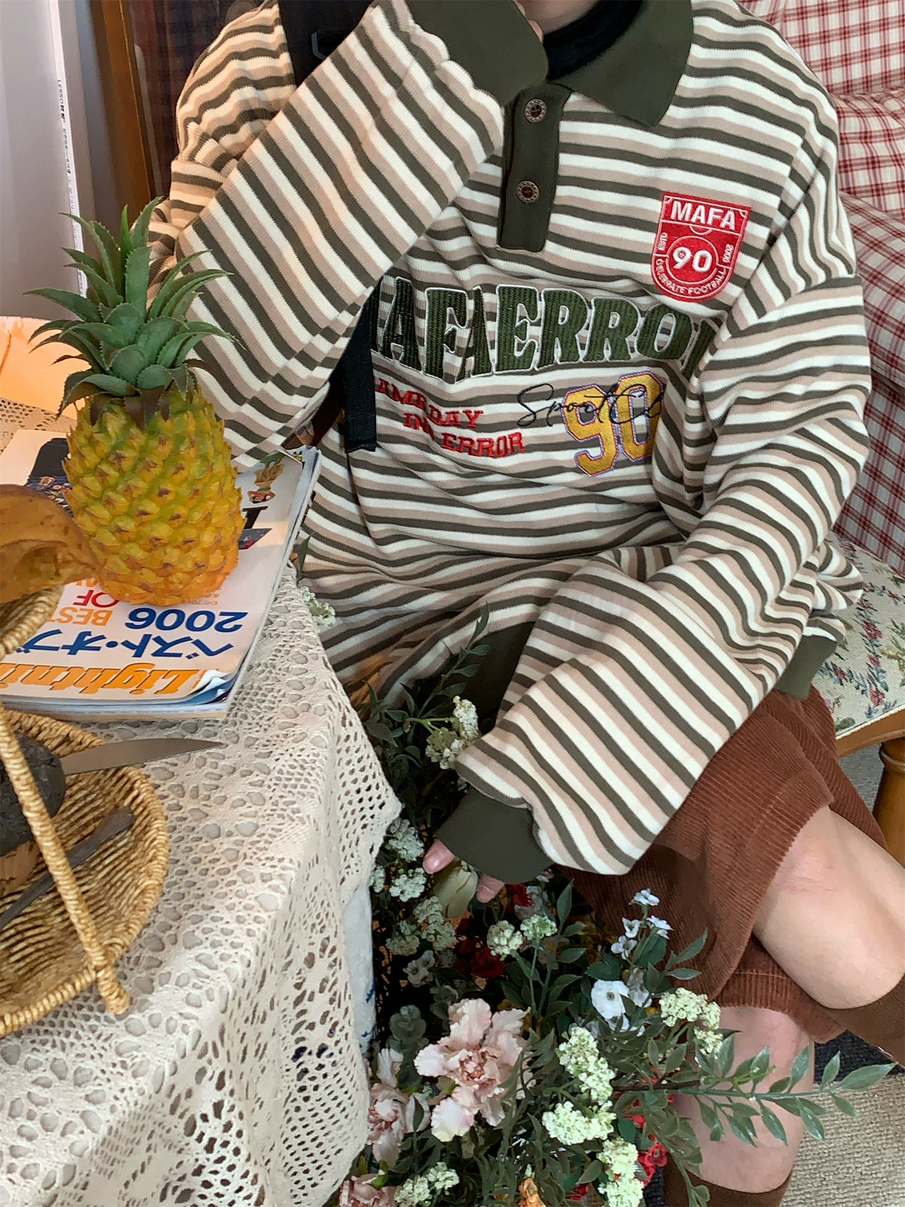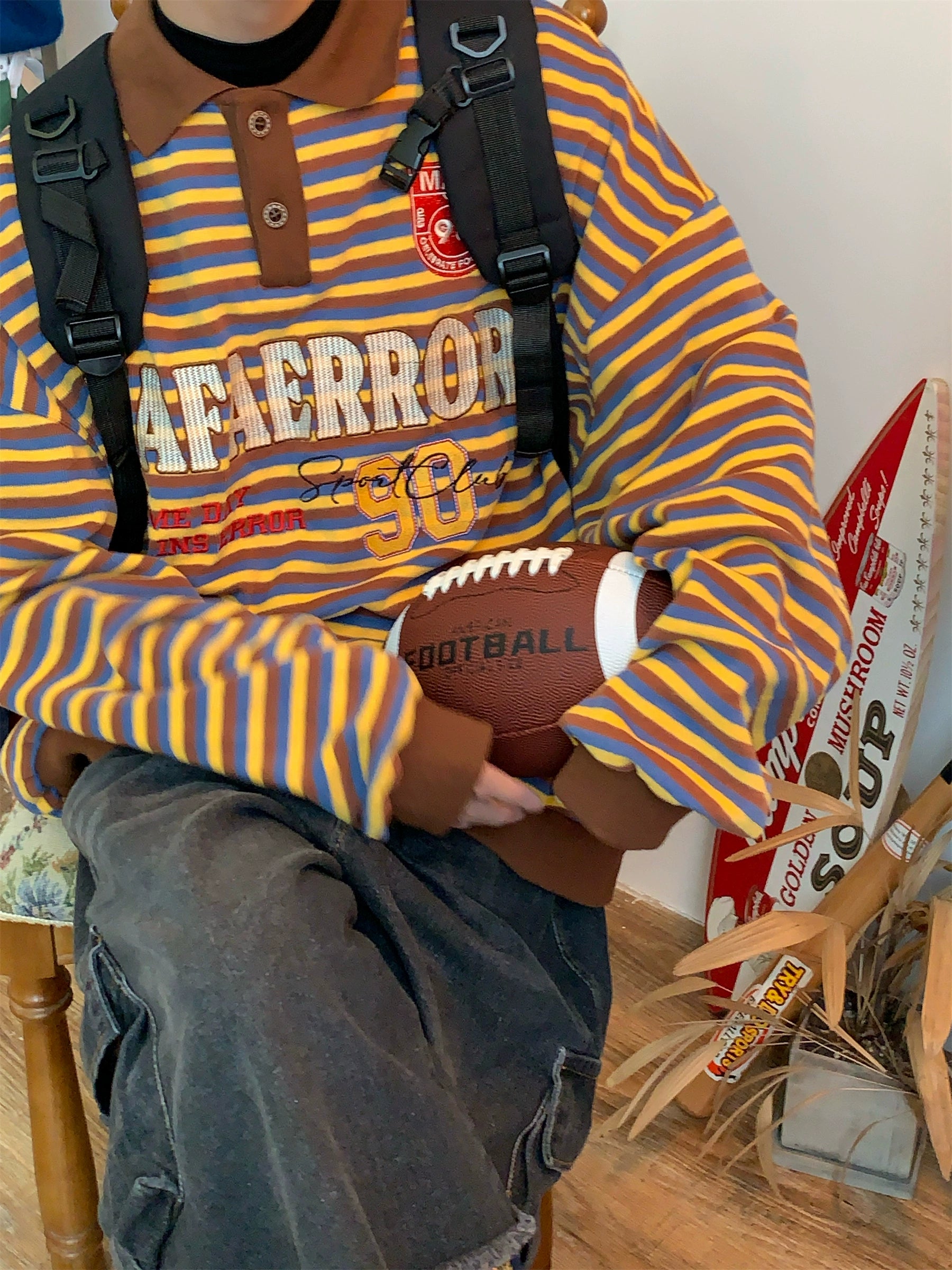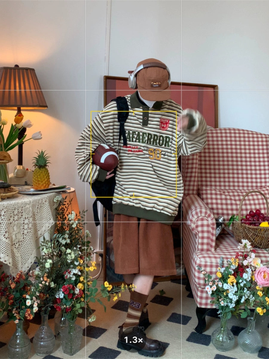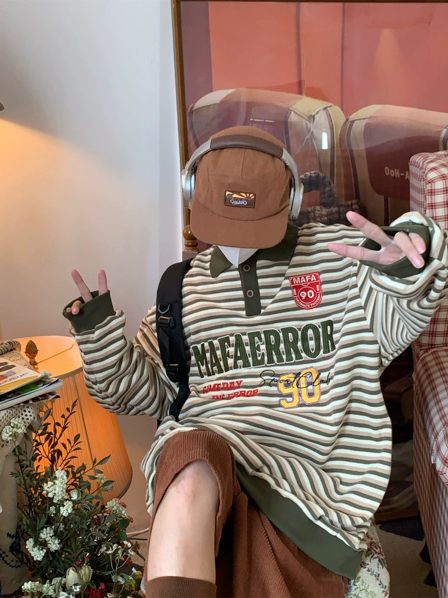 c2 Retro Striped Long-sleeved Lapel Polo