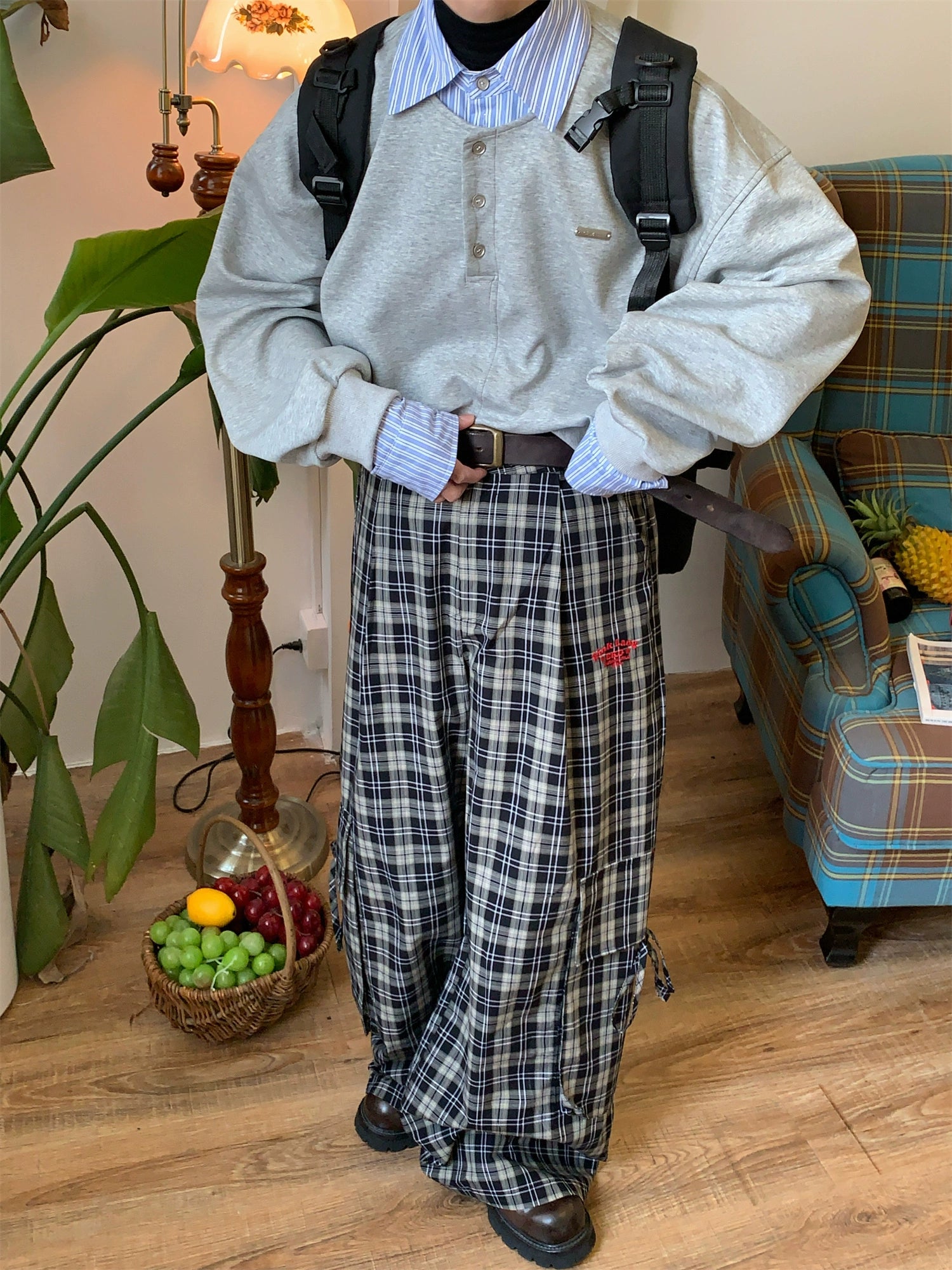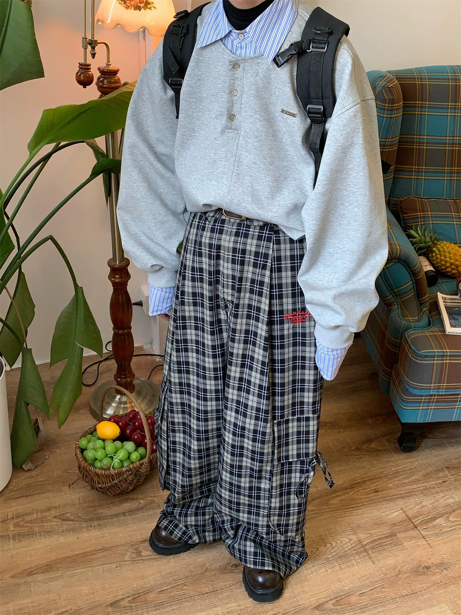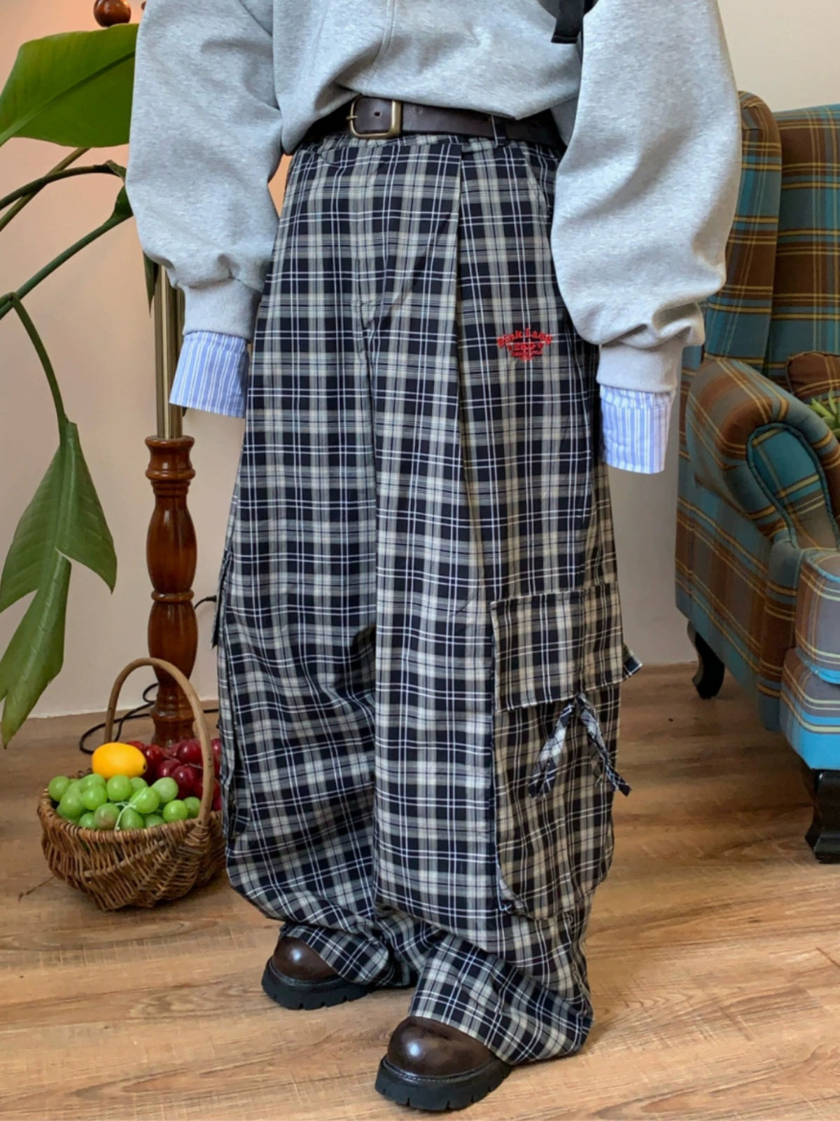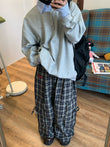 c2 Contrasting Plaid Wide Leg Casual Pants