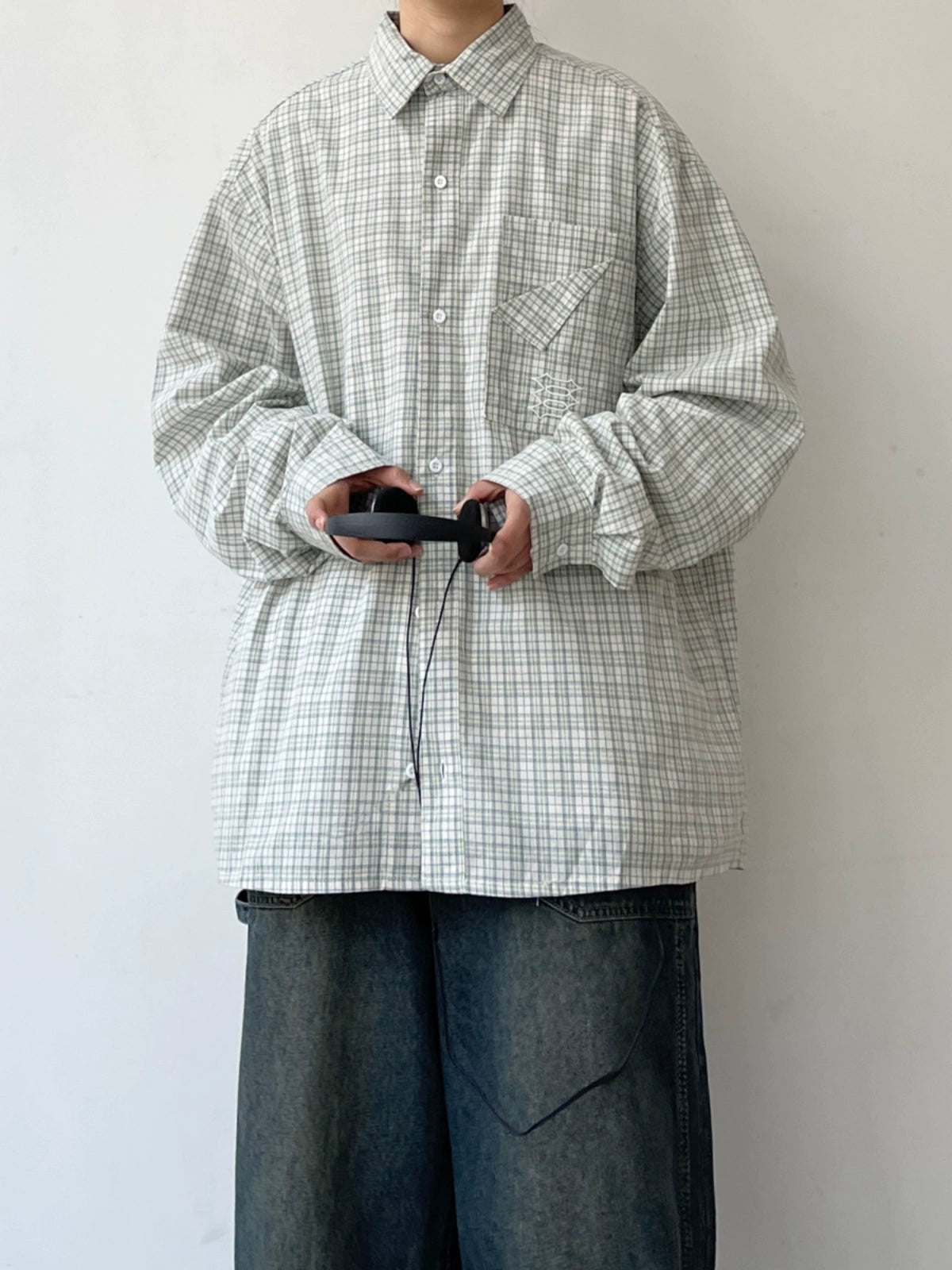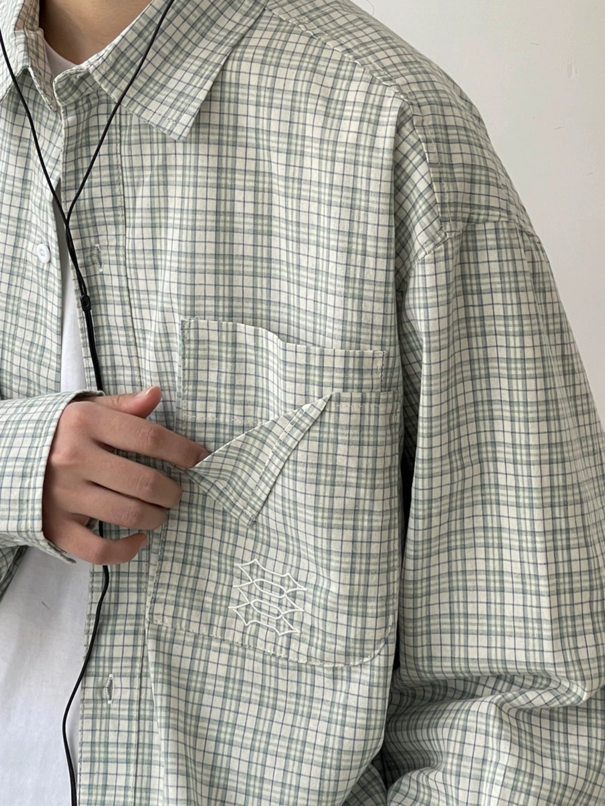 EVER Folded Pocket Green Plaid Shirt