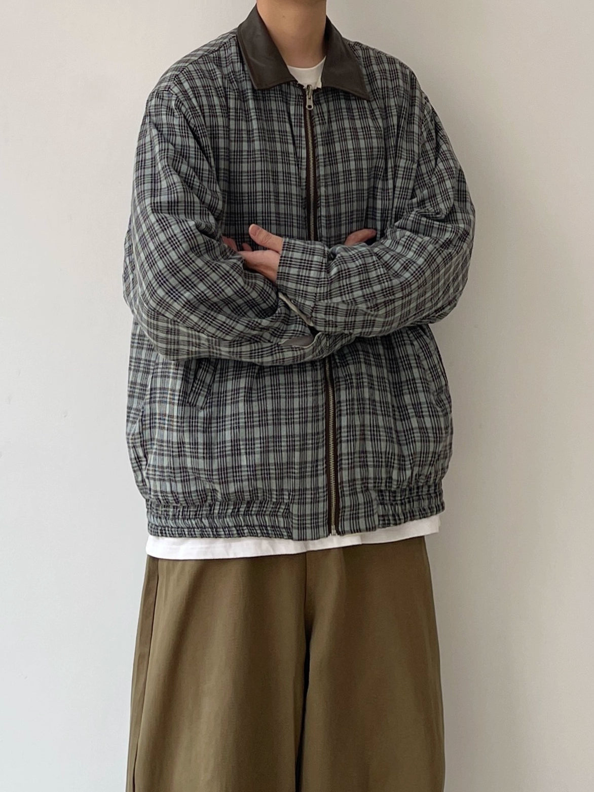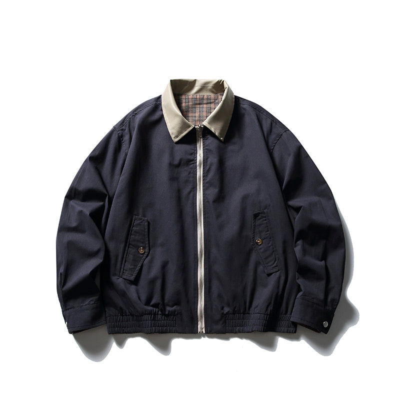 EVER JOY Cropped Plaid Zipper Jacket