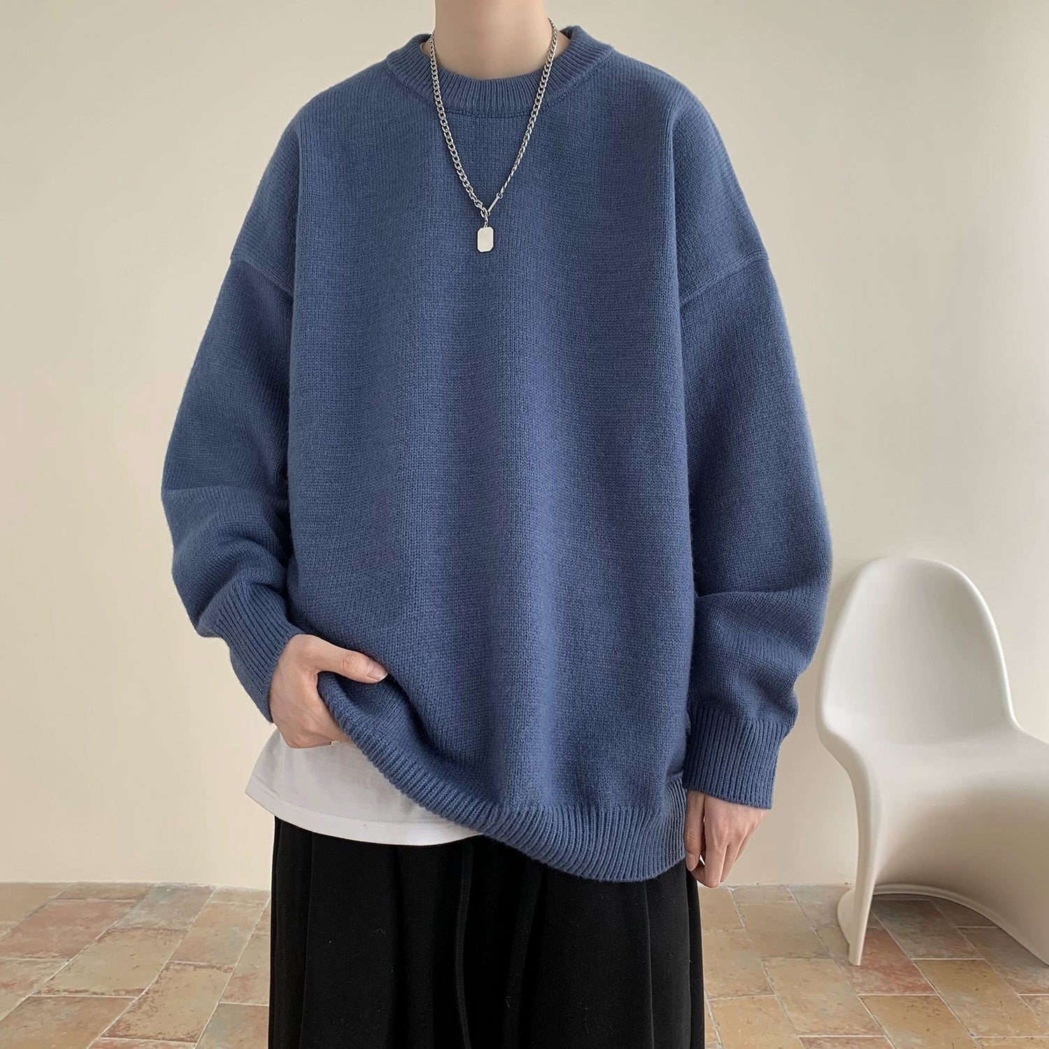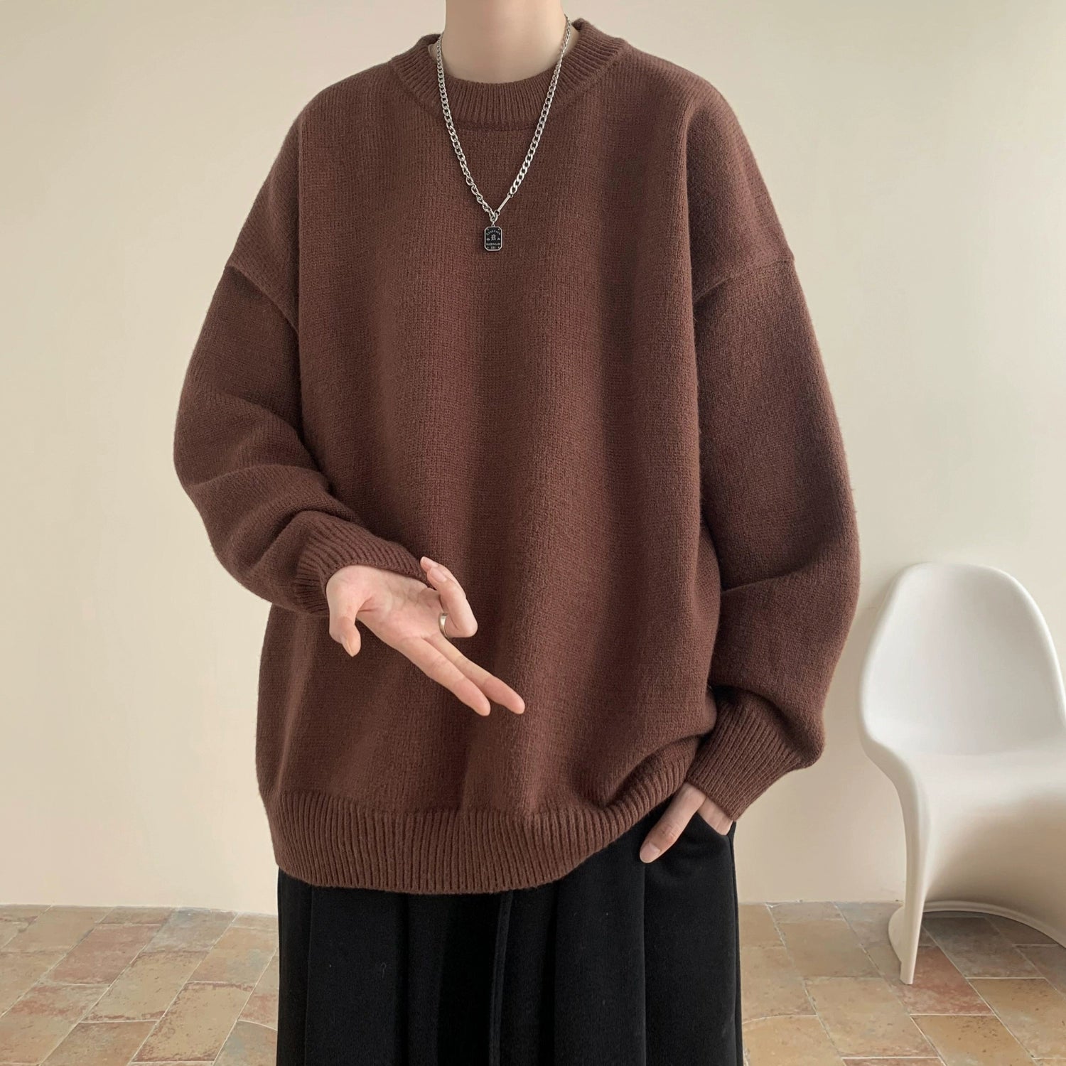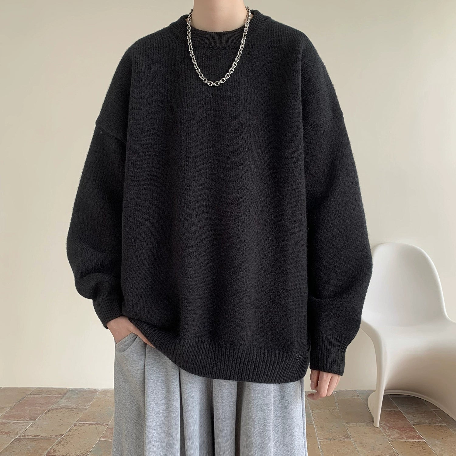 v37 Essential Solid Color Knit Sweater